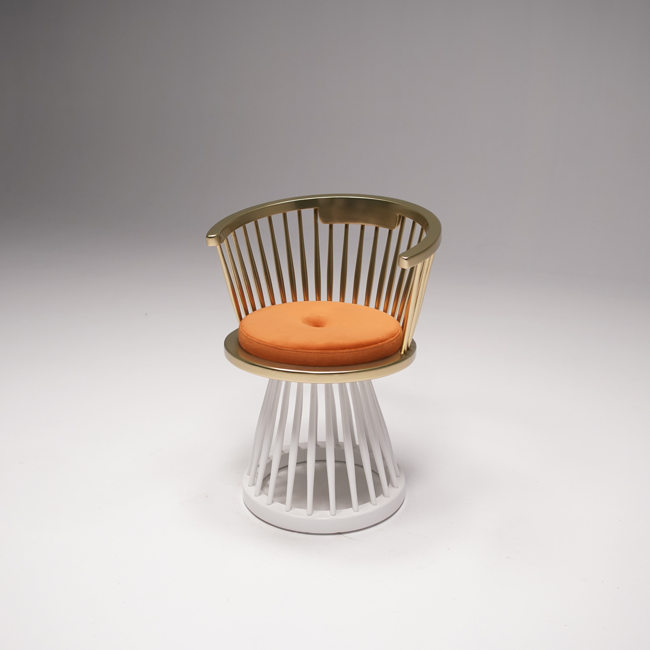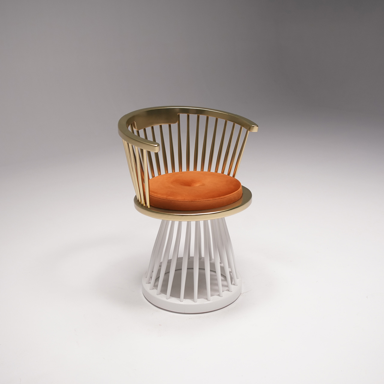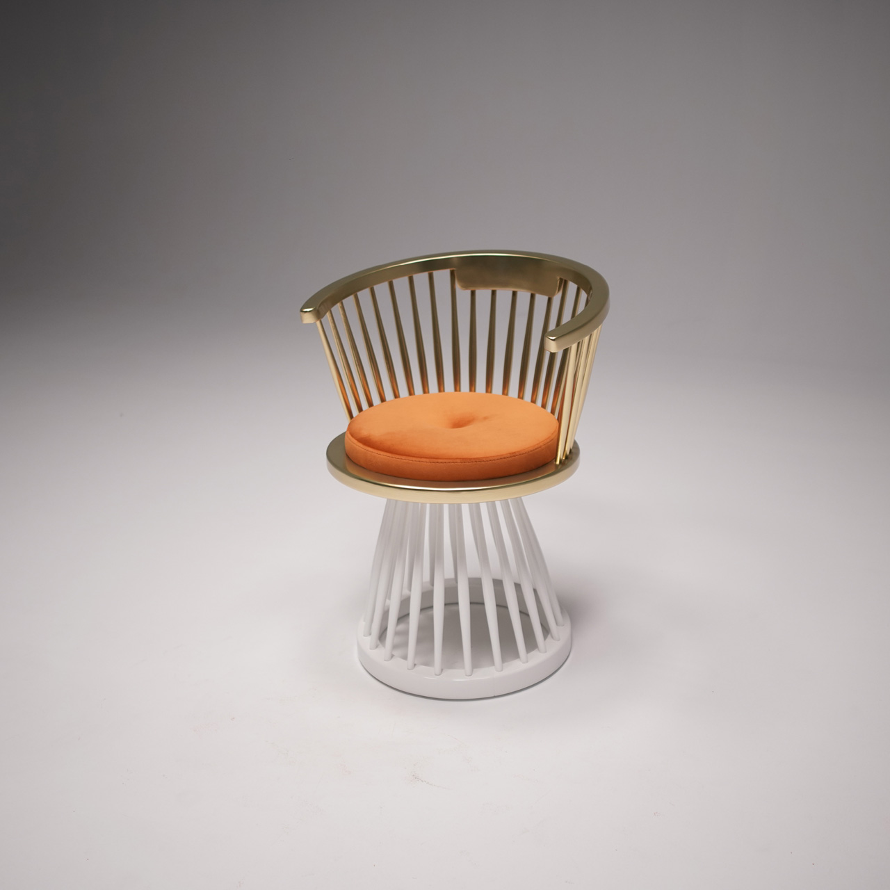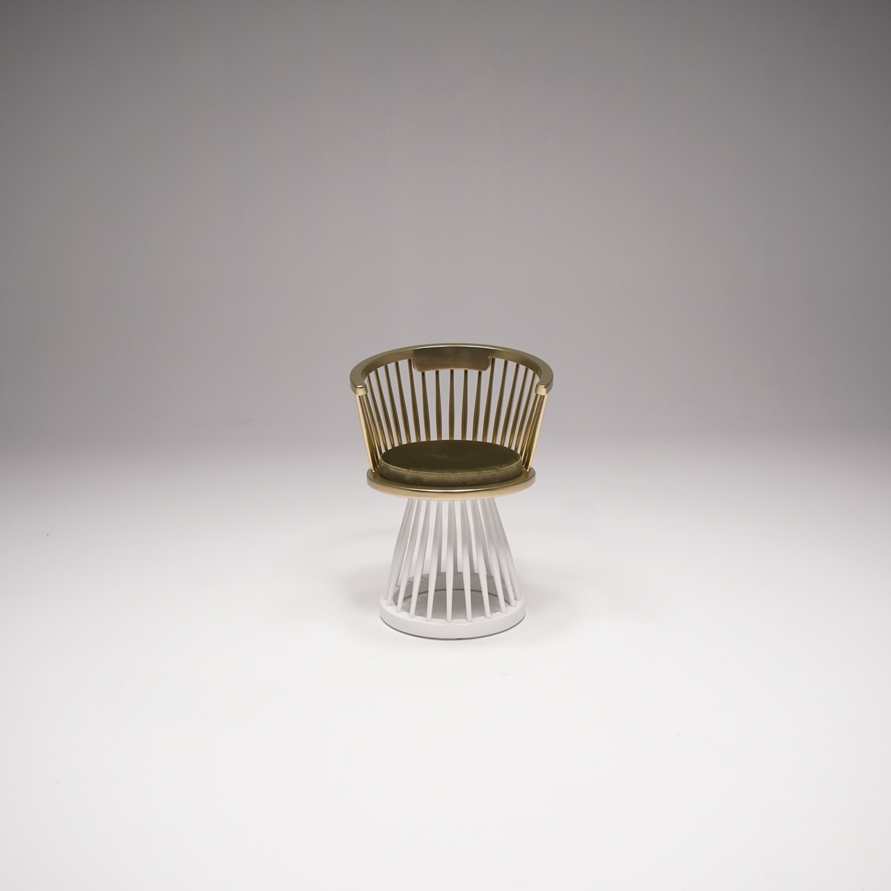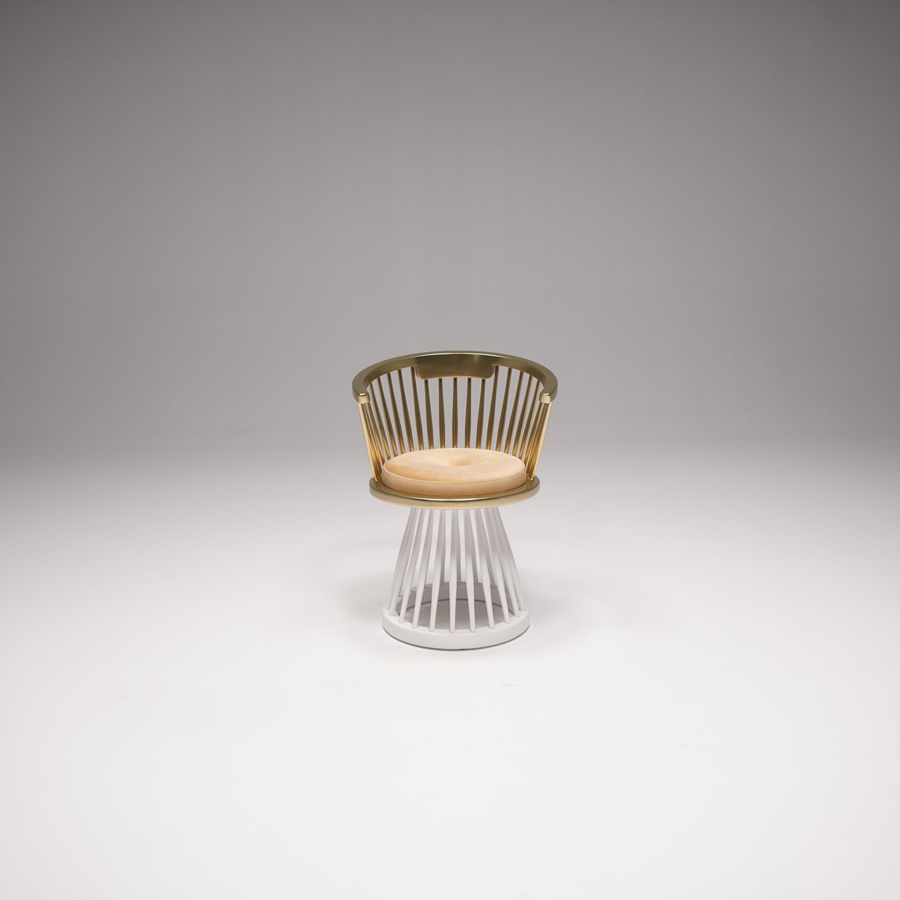Aurelia has always been an empowered and self-assured piece. As a result of its work and commitment to its career, Miss Aurelia became an enriched bourgeois. This piece of furniture evokes both nostalgia and the grandeur of nature with her peculiar shape and luxurious details. Beautifully crafted in ash wood finished in gold paint and white lacquered, Miss Aurelia stands out in any room in your home. She is decorated with a luxurious velvet cushion and crystal detailing that help creating a sense of magnificence.