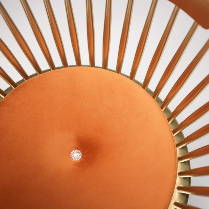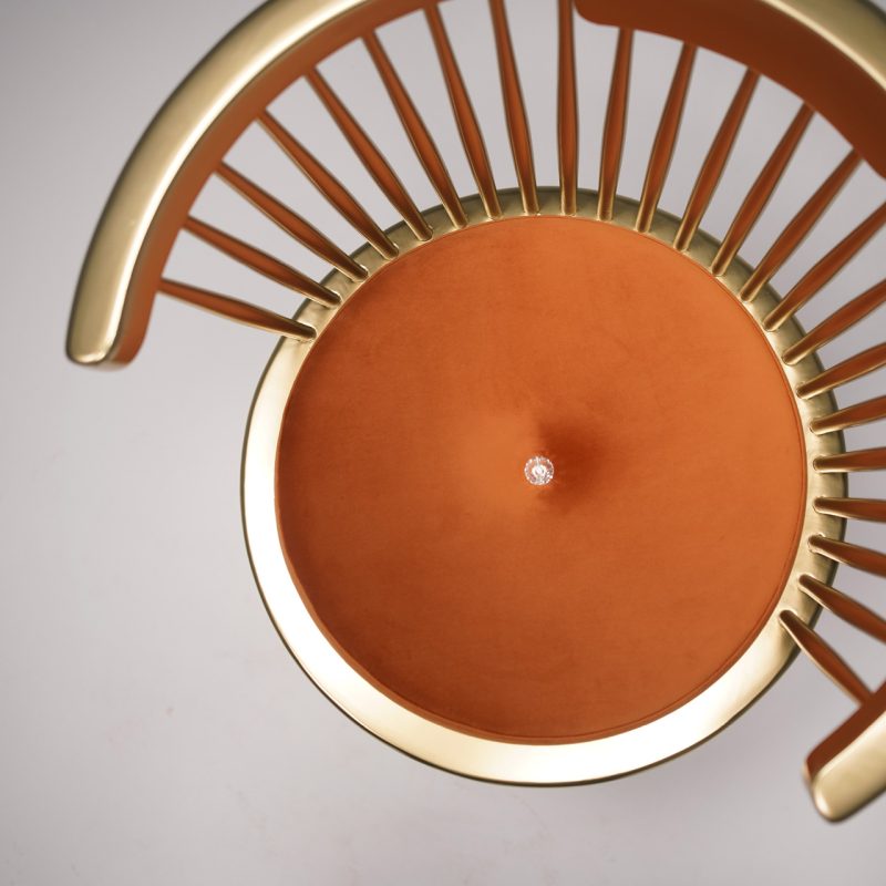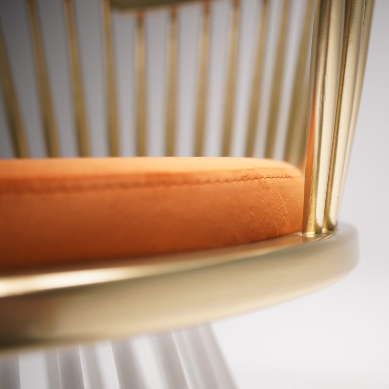 Materials and Finishes - | Golden Lacquer, Orange Velvet Fabric, White Lacquer |