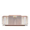 Miss Tiles is one of the illustrious queens of our history. Crowned still a young girl, she was always recognized by the common people for its charming beauty, immense generosity and harmony. Every morning, she would parade along the sidewalk displaying her typical tiles of Portuguese culture. Constructed of poplar root with a high-gloss finishing, this unique piece spread a touch of glamour and sophistication. To enhance its appearance, her doors handles, in pine bark, matched perfectly with the elegance of the golden details of her finishing. Years pass, but her essence remains timeless.
