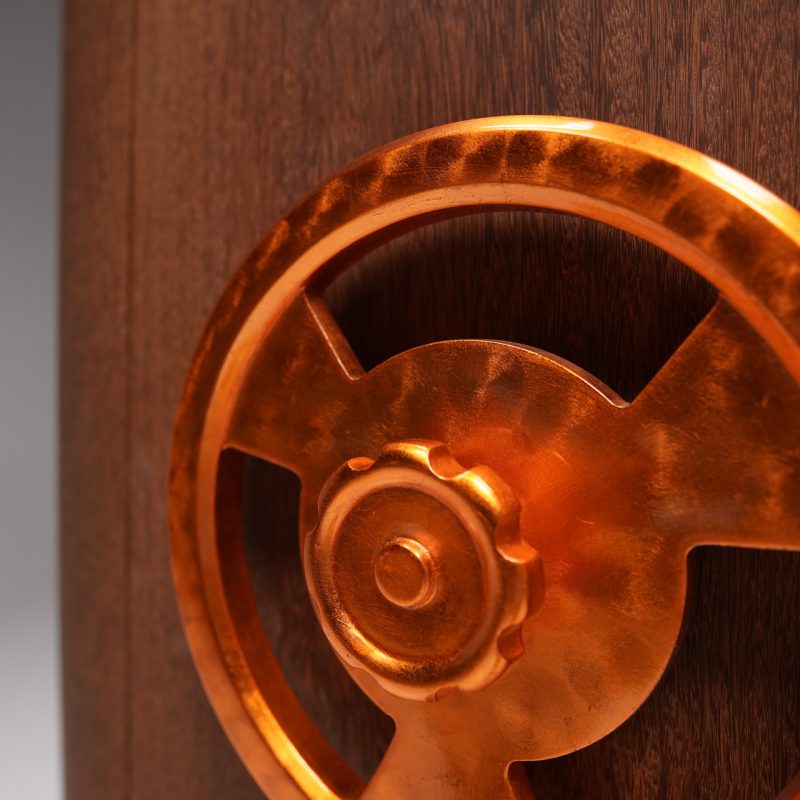Mister Federico has followed the great technological development of the 18th century, and traveled, in a time machine, to the present, bringing us all the intensity of the greatest revolutionary industry milestone. His sucupira wood construction in symbiosis with the copper painting that overlay his handles and legs give Mister Federico the power to impress with his unique design.