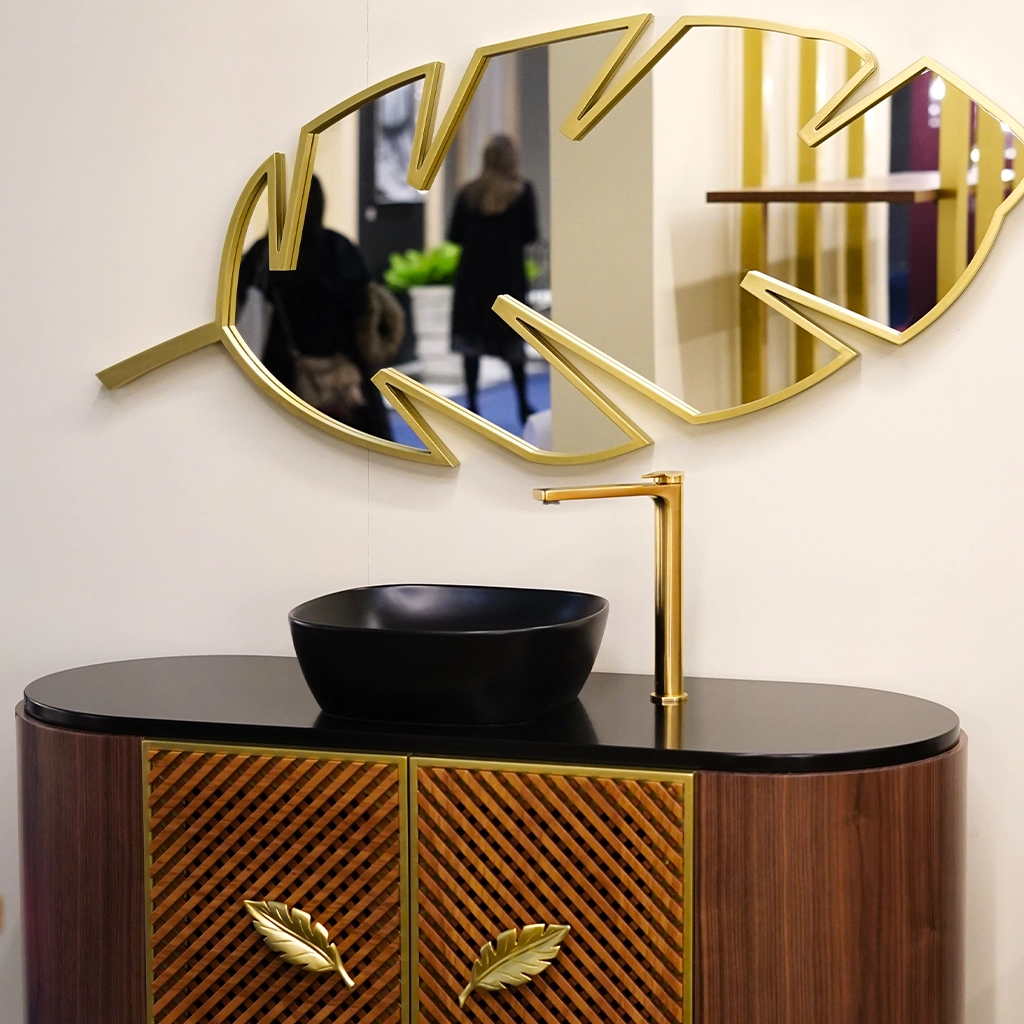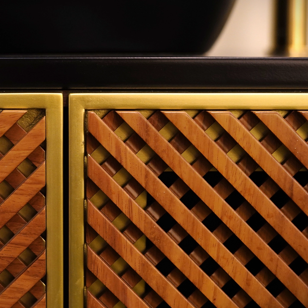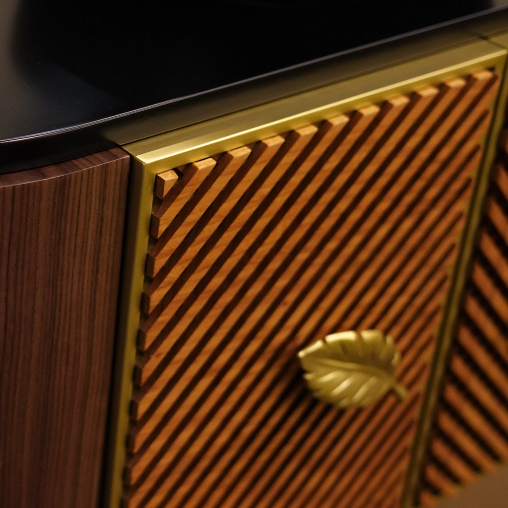 Afizelia solid wood – Matte finishing, Black laquered, Golden laquered – Matte finishing, Walnut veneer – Matte finishing